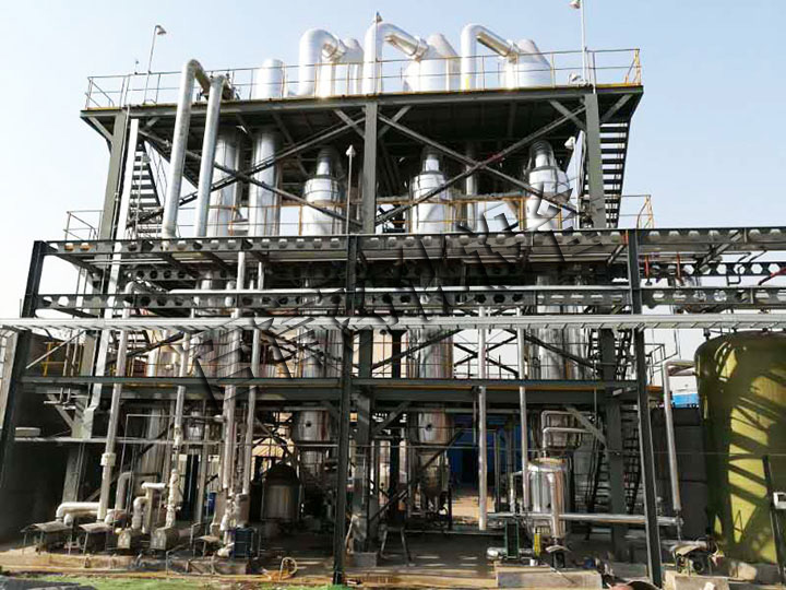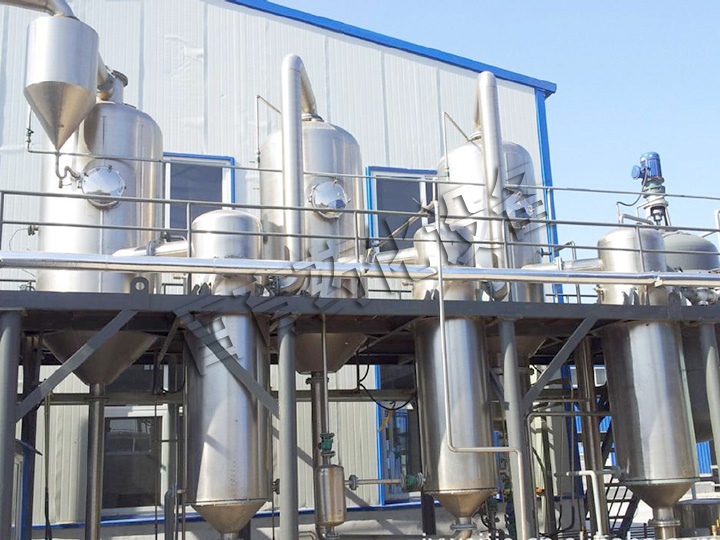 三效蒸發器主要由相互串聯的三組蒸發器、冷凝器、鹽分離器和輔助設備等組成。三組蒸發器以串聯的形式運行,組成三效蒸發器。整套蒸發系統采用連續進料、連續出料的生產方式。