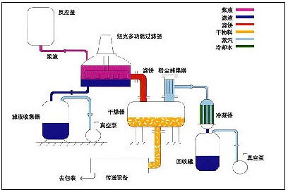 4、操作連續(xù):能夠使過(guò)濾和干燥在一個(gè)連續(xù)的系統(tǒng)內(nèi)進(jìn)行,毋須處理濕濾餅。在過(guò)濾器下可以連接一個(gè)干燥器,使?jié)駷V餅直接卸入干燥器,干燥后的產(chǎn)品可以機(jī)械傳送至稱量、包裝等工段。